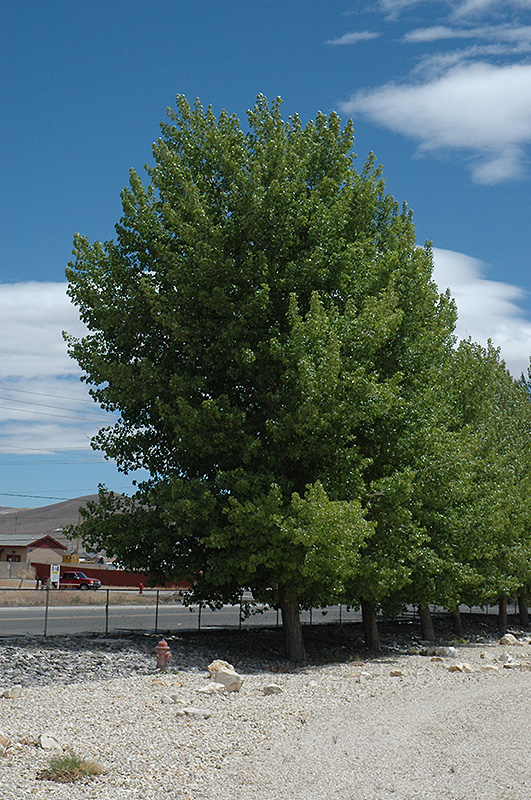 An enormous upright-oval shade tree for larger properties and parks, this is a seedless variety that's tolerant of the worst growing conditions; has an aggressive root system, so don't plant near the house; makes an excellent windbreak or quick shade tree