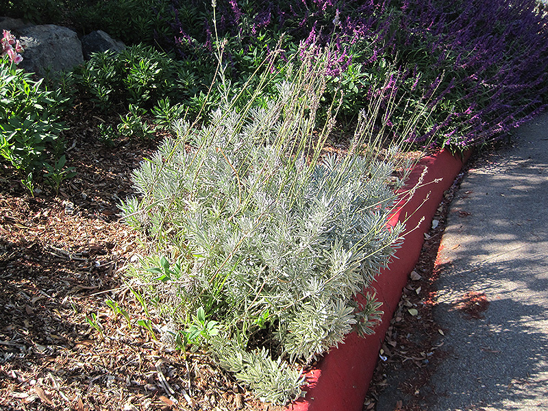 French Lavender will grow to be about 32 inches tall at maturity, with a spread of 4 feet. It tends to fill out right to the ground and therefore doesn't necessarily require facer plants in front. It grows at a slow rate, and under ideal conditions can be expected to live for approximately 10 years.