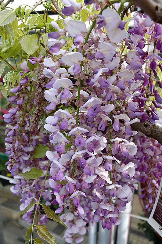 Texas Purple Japanese Wisteria is draped in stunning chains of fragrant purple pea-like flowers with white overtones hanging below the branches from mid to late spring. It has green deciduous foliage which emerges coppery-bronze in spring. The narrow pinnately compound leaves turn yellow in fall.