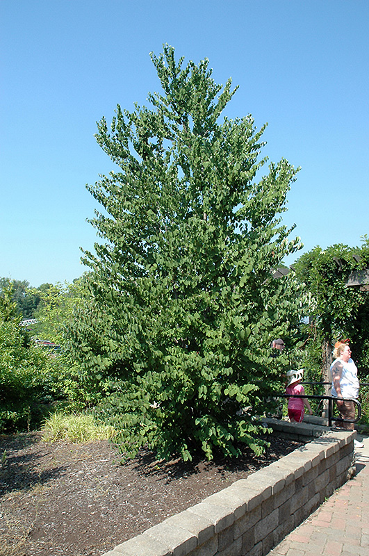 A truly refined tree with a tight pyramid shape and superb spring and fall foliage colors; very neat and tidy tree, good choice for larger home landscapes, can grow quite large; fallen leaves emit a delicious caramel fragrance in autumn